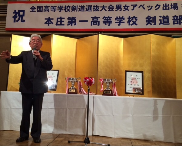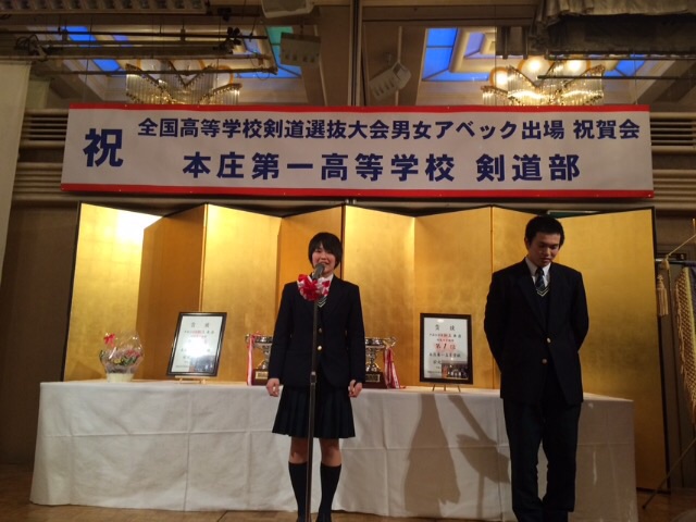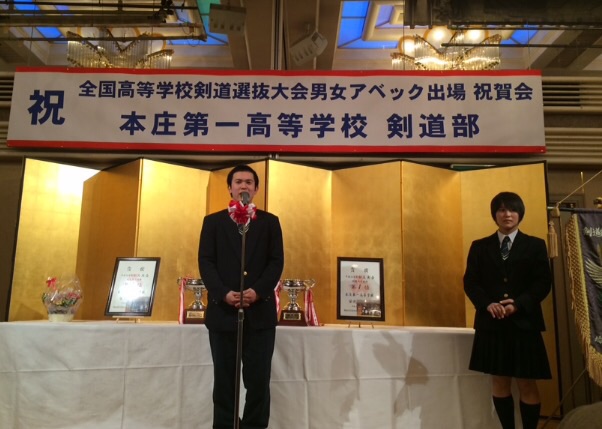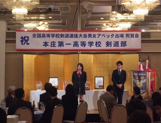 全国選抜大会アベック出場祝賀会1月24日、グランドホテル本庄にて、本校剣道部の全国選抜大会